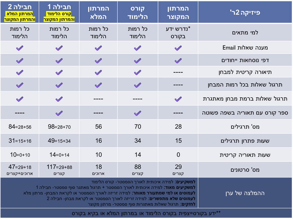 המרתון המקוצר מכיל נטו תרגול של שאלות מורכבות ומאתגרות. אין לימוד במרתון המקוצר. המרתון המקוצר מתאים למי שכבר למד בפיזיקה בשפה פשוטה (קורס או מרתון מלא) או לסטודנטים בעלי ידע מקדים.