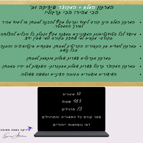 השיעורים יופיעו בסרטונים מטה ומועברים באווירה נעימה- כן, פיזיקה ניתן ללמוד בשפה פשוטה ובגובה העיניים.