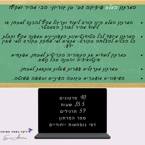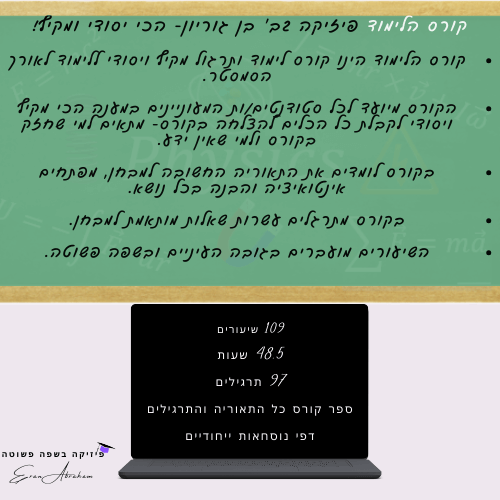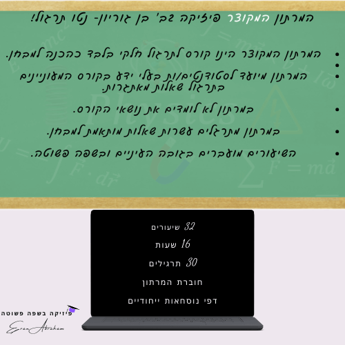 בשיעורים לומדים את כל התאוריה הרלוונטית ותרגול עשרות שאלות מדויקות לרמת המבחן. הקורס הכי מדויק שיש!