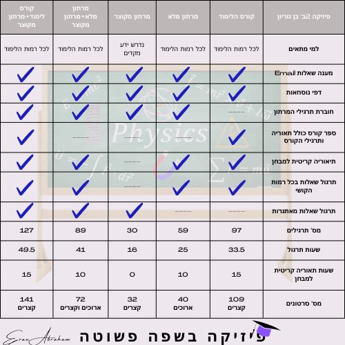 הקורסים והמרתונים בפיזיקה 2ב׳ בן גוריון- הסבר קצר והשוואה