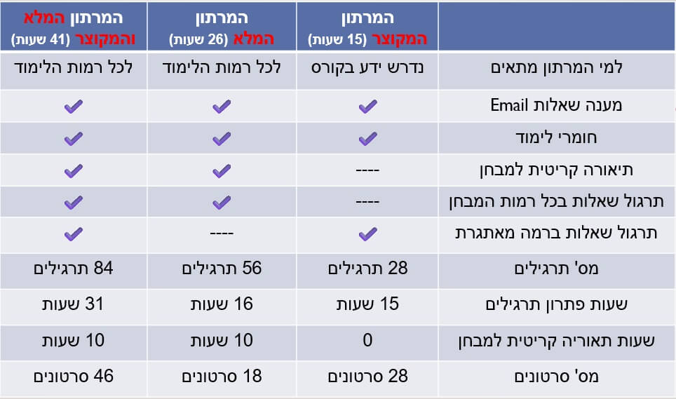 קורס תרגול קצר להכנה למבחן לתרגול עשרות שאלות מאתגרות.